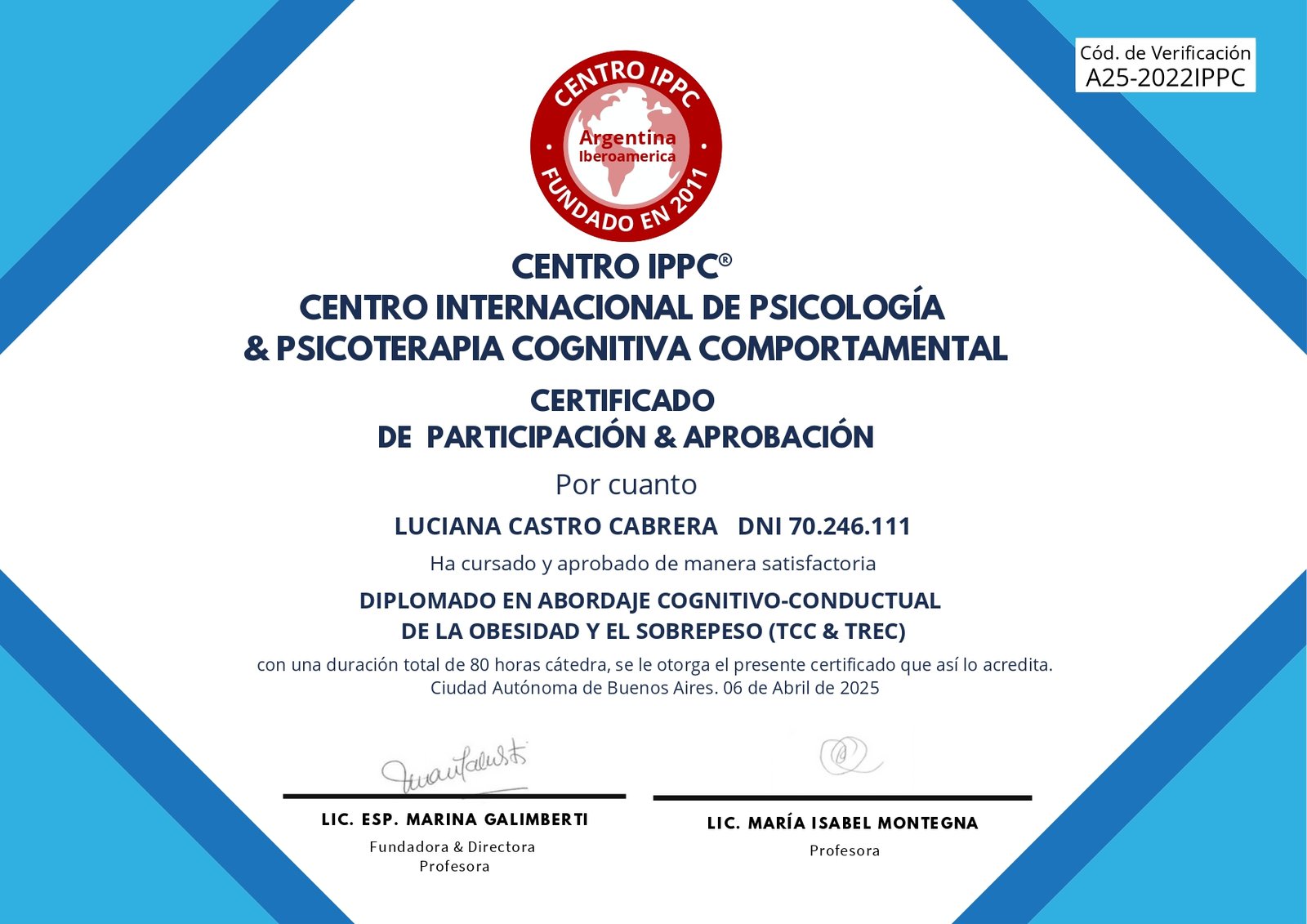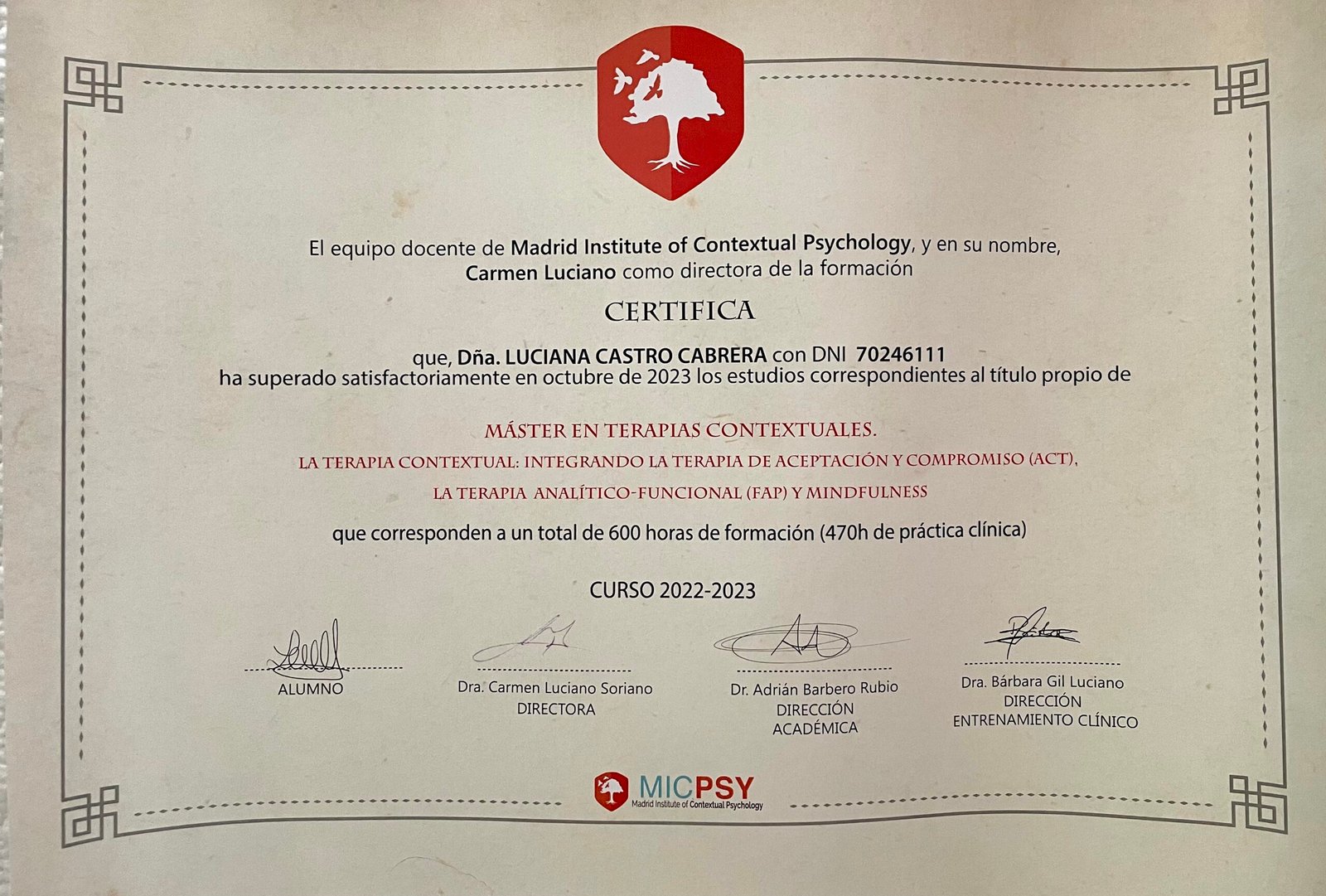 Mis certificaciones como Psicóloga Clínica